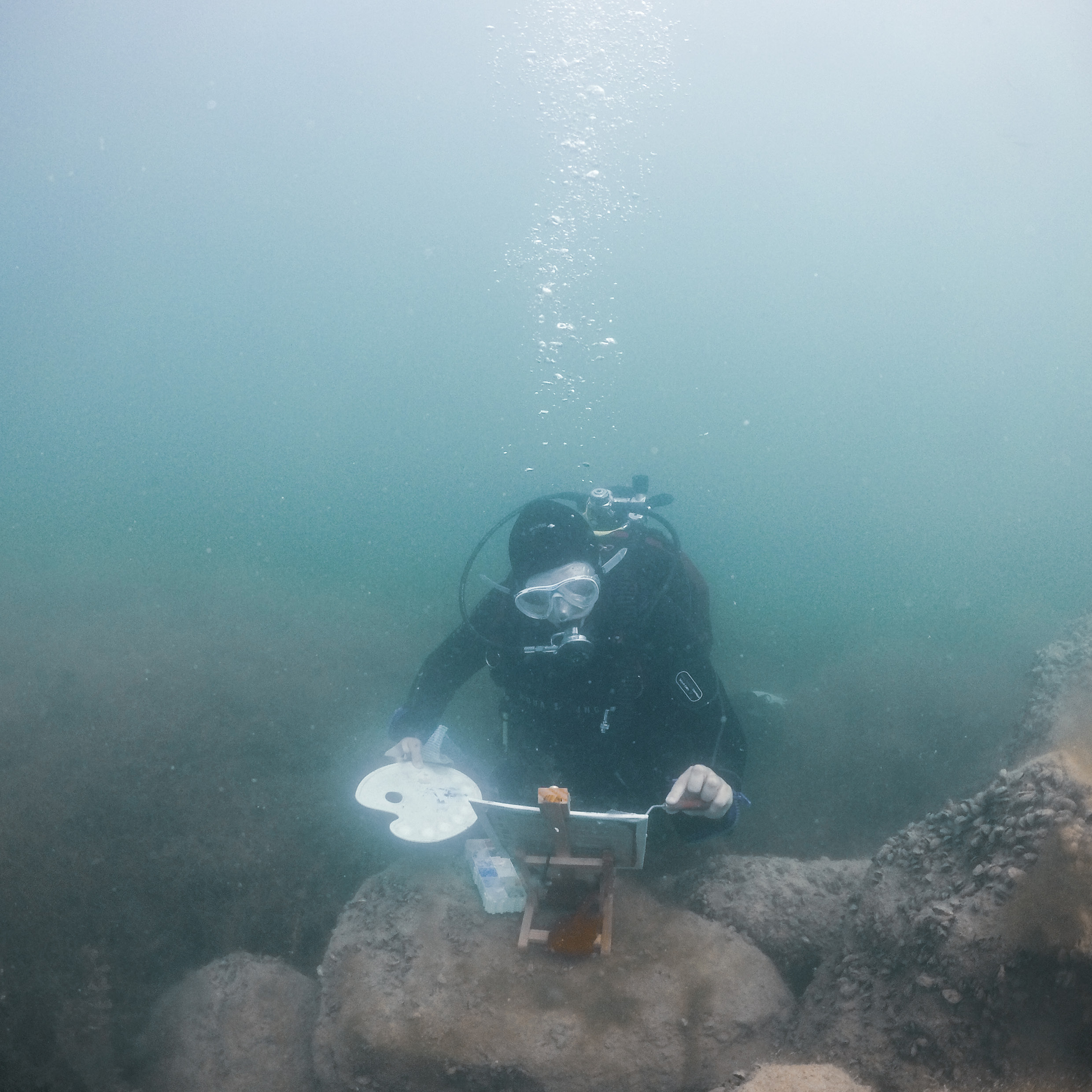 Durant 3 mois, j'ai développé la recette d'une peinture qui me permet d'aller peindre des toiles sous l'eau ! Si vous pensez que c'est impossible, alors je vous invite à découvrir ma recherche juste ici.